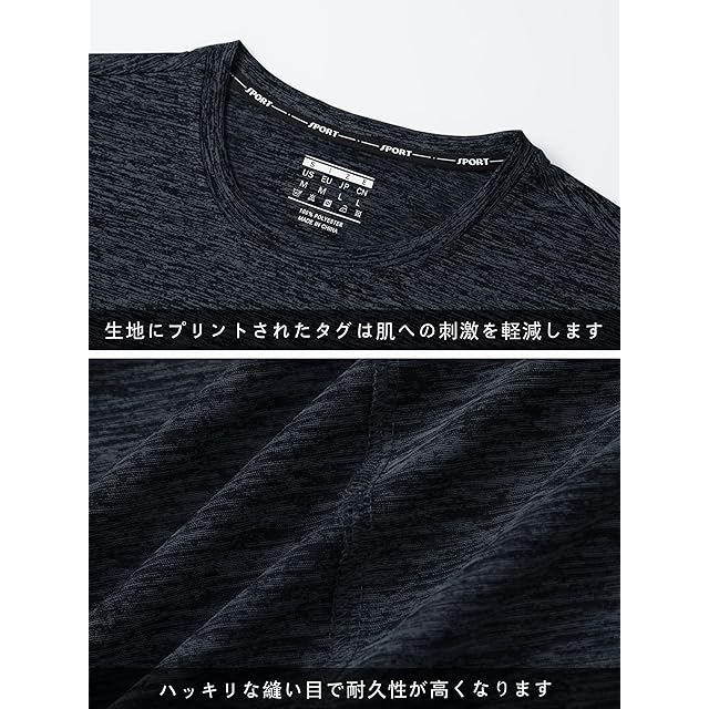 【通気・吸汗速乾】夏のトレーニングに最適なTシャツです。一見普通のTシャツに見えますが、実は高機能スポーツウェアに使用されるポリエステル素材を採用し、汗を素早く吸収・速乾して、涼しさをキープします。さらに、通気性にも優れ、肌に心地よい風通しを提供します