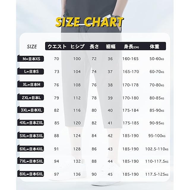 商品名:ズボン メンズ パンツ 接触冷感 -5℃ 夏服 7分丈 9分丈 涼しい 速乾 超ストレッチ 薄手 軽量 美脚 スウェットパンツ 調整紐 人気 快適 ゆったり 通気性 部屋着 ボトムス アイスシルクパンツ 夏 大きいサイズ M-8XL (JP, アルファベット, 2XL, #7分丈:ブラック)