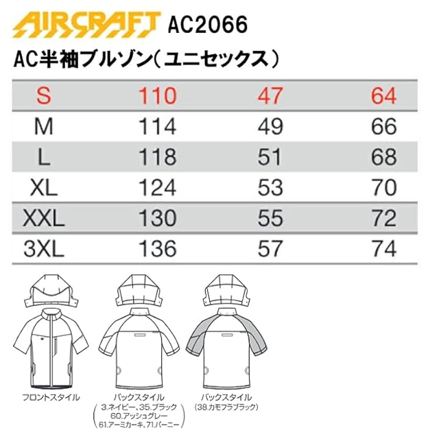 商品名:[バートル] エアークラフト 半袖 ブルゾン (ファンなし) AC2066 限定色 カモフラブラック AIRCRAFT XL 38カモフラブラック