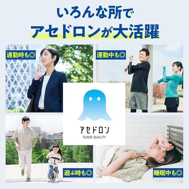 さっと汗を吸って、パッとすぐ乾く 、シュッと汗ムレを軽減するGUNZEの吸湿速乾テクノロジーです。