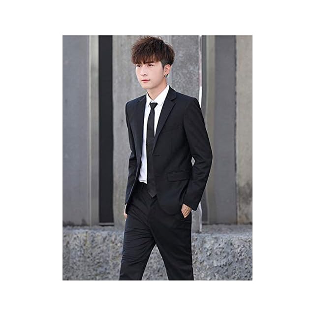 商品名:[Kira Sutsu] スーツ メンズ 2点セット 上下セット ジャケット スラックス 無地 2つボタン 礼服 結婚式 就職スーツ パーティー カジュアル (2L, ブラック)