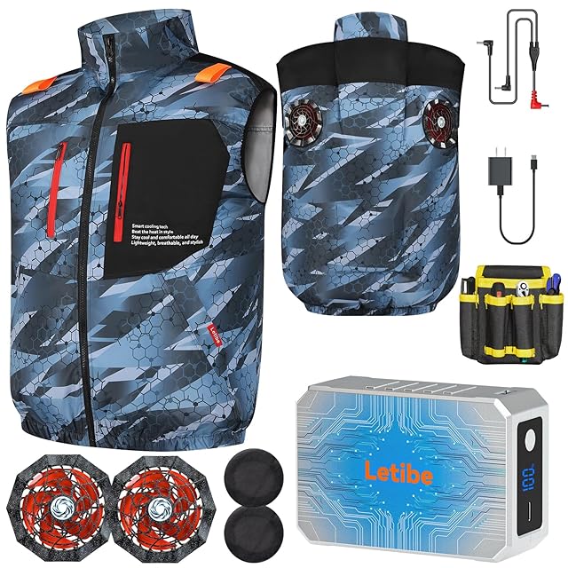 [Letibe] 【日本優良企業】 37460mAh 42V 最強 ファン付きベスト ハイバックファン設計 –18℃の遮熱効果 空調作業服 ファンバッテリーセット 16Vから42Vまで調節可能 AI機能搭載 デュアルコントロールモード 30W超高速充電 発火防止アルミ加工 防塵カバー付き 作業用ツールバッグ付き UVカット 暑さ対策 熱中症対策 PSE認証済