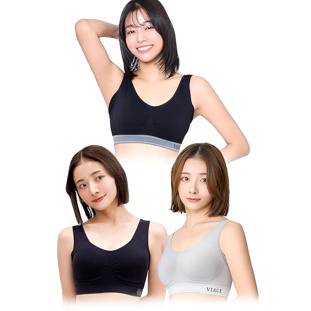 [VIAGE] ヴィアージュビューティーアップナイトブラ 3枚セット (M, ブラック/ブラックグレー/クールグレー)