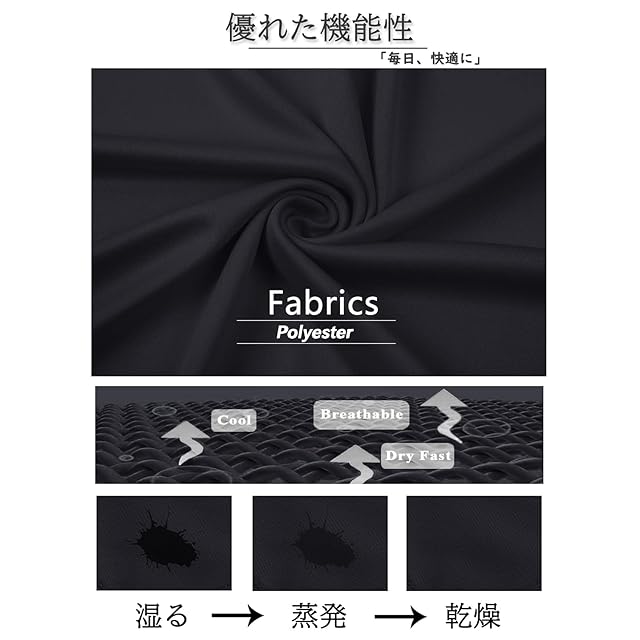 【サラッとした着心地】吸汗性、速乾性、通気性が抜群!柔らかい素材で何枚も揃えたくなります!ポリエステル素材で仕上がっており、汗をかいても素早く汗を吸収し、肌触り良く快適に着こなせるのが特徴です。いつでもサラッとした着心地です。毎日気軽に着てほしい、おすすめのアイテムです