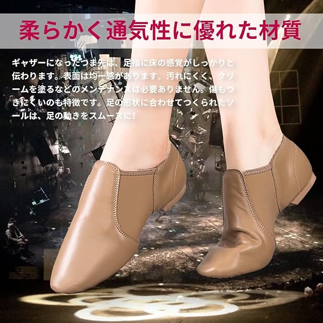 ジャズシューズ ダンスシューズ ジャズダンスシューズ ジャズシューズ子供 ジャズシューズキッズ レディース フィット感 サイドゴム スリッポン ベージュ38
