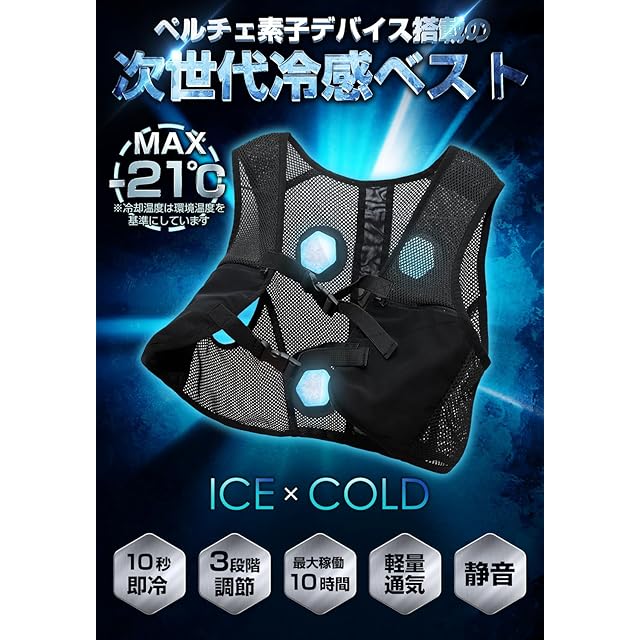 ★最大-21℃の冷却効果を発揮!4カ所ペルチェ素子から体を効果的に冷やす!
