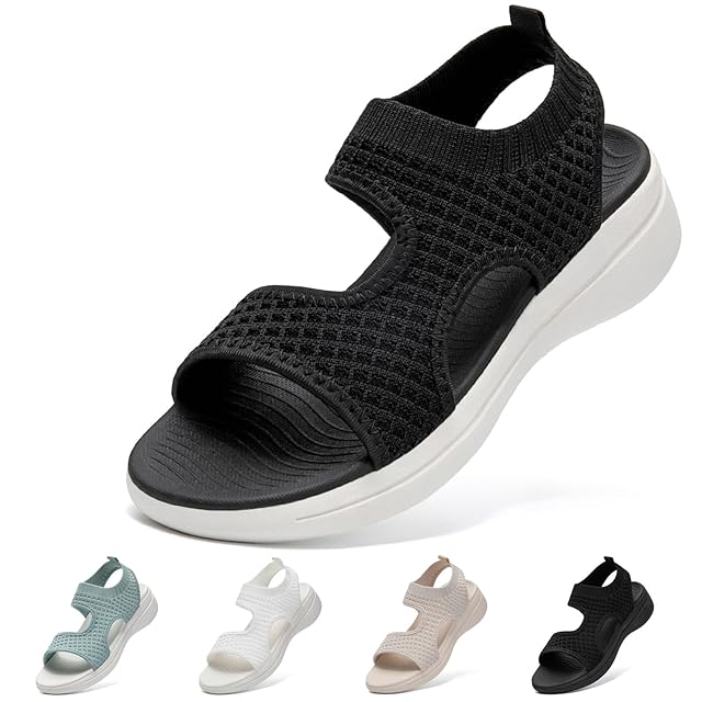 [STRDEOUT] スポーツサンダル レディース サンダル 歩きやすい ニット メッシュ 夏 軽量 厚底 通気 オフィス ウォーキング オシャレ