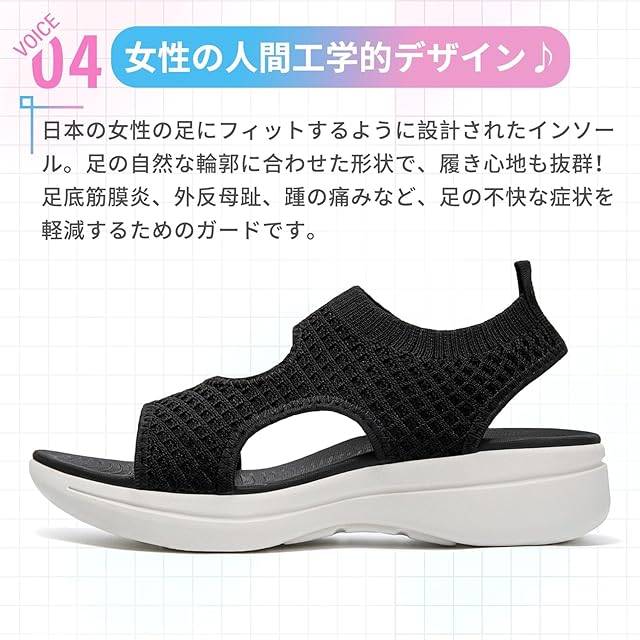 商品名:[STRDEOUT] スポーツサンダル レディース サンダル 歩きやすい ニット メッシュ 夏 軽量 厚底 通気 オフィス ウォーキング オシャレ
