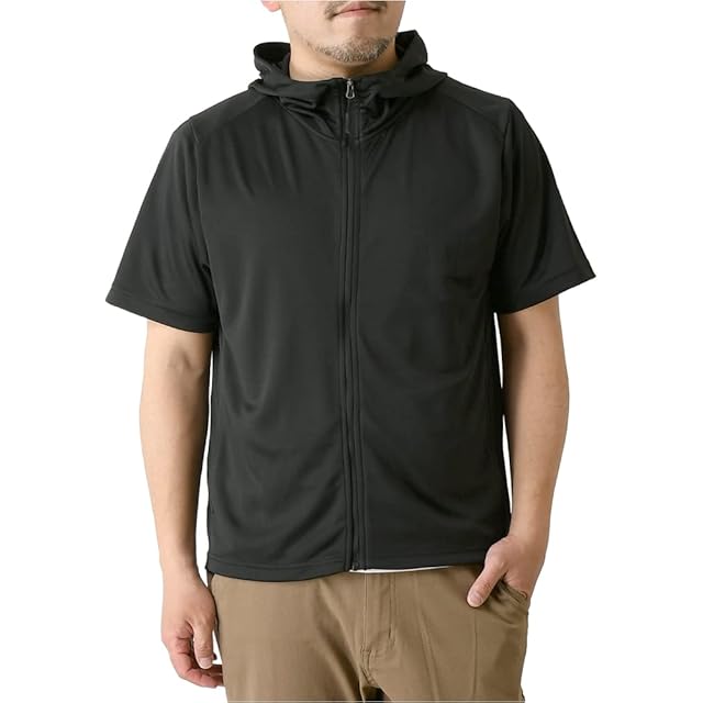 [ラフルーレ] パーカー メンズ 半袖 吸汗 速乾 ドライ ストレッチ 無地 ジップパーカー スポーツ 15A0001 3L A-ブラック