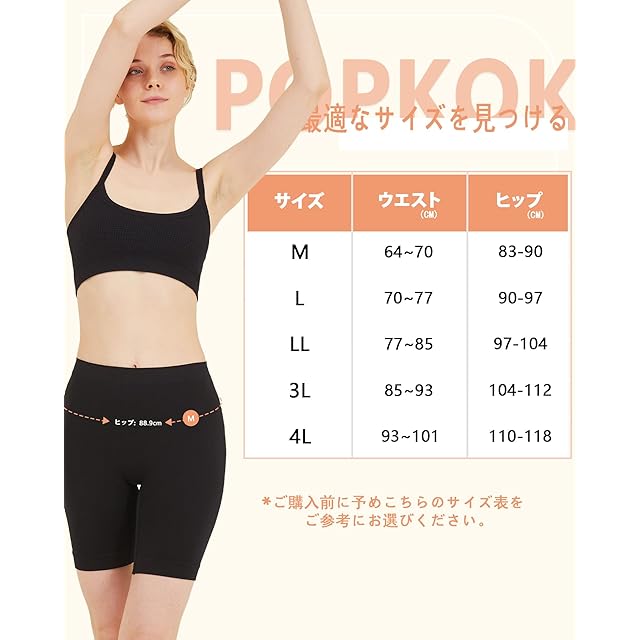 【サイズ情報】ポップコーの3分丈スパッツレギンスはMから4Lまで全5種類のサイズが揃っています。ぴったりの一枚をお届けいただけるために、ご購入前に予めこちらのサイズ表をご参考にお選びください。最適なサイズを選択する時、実際の体型に合わせてサイズを変更することをお勧めします。弊店の商品についていかなる質問または提案があれば、お気楽に弊店までご連絡してください。何とぞよろしくお願い申し上げます。