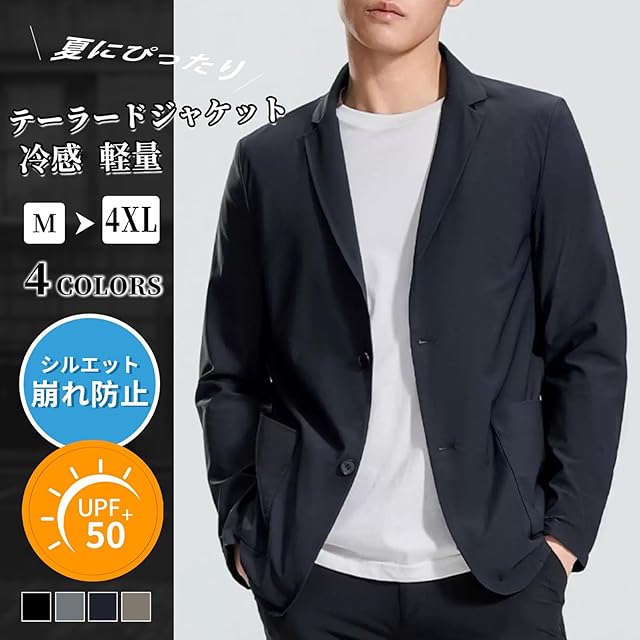 [22 Wear] メンズ ジャケット 夏 サマージャケット ビジネス スーツジャケット UVカット 涼し テーラードジャケット カジュアル 接触冷感 ストレッチ 2つボタン 細身 アウター (ネイビー 3XL)