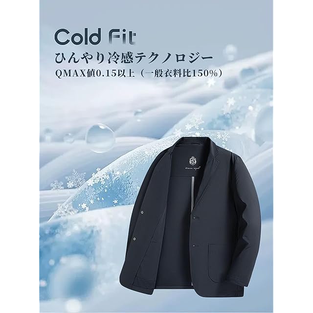 【夏にぴったり!速乾・冷感素材】こちらのメンズジャケットは、速乾性・通気性・冷感機能を兼ね備えた高機能素材を使用。夏の暑い日でも涼しく快適に着られるのが特徴です。柔らかく伸縮性のある80.4%ナイロンと19.6%スパンデックスの配合で、動きやすさとフィット感を両立。ビジネスシーンでもカジュアルシーンでも活躍、夏の男性に最適な一枚です。