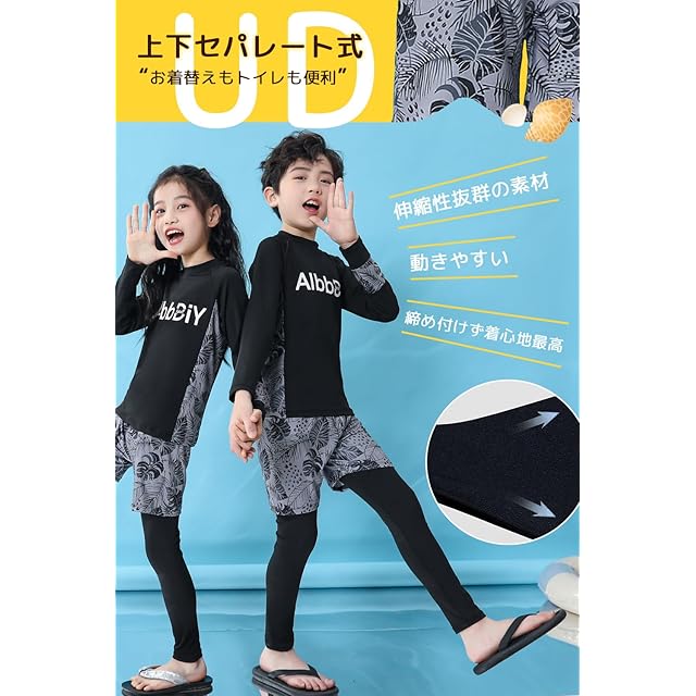 (✪‿✪)【優れた伸縮性 吸湿速乾性】高伸縮生地を採用なので、フィット感たっぷり!水遊びやスポーツなど激しく運動しても締め付け感なく、自由自在の快適さを実現します。ドライ繊維追加で、吸湿速乾効果、汗かいても、濡れてもサラサラの肌触りがネバネバ感なありません。使用感最高のキッズ水着です。