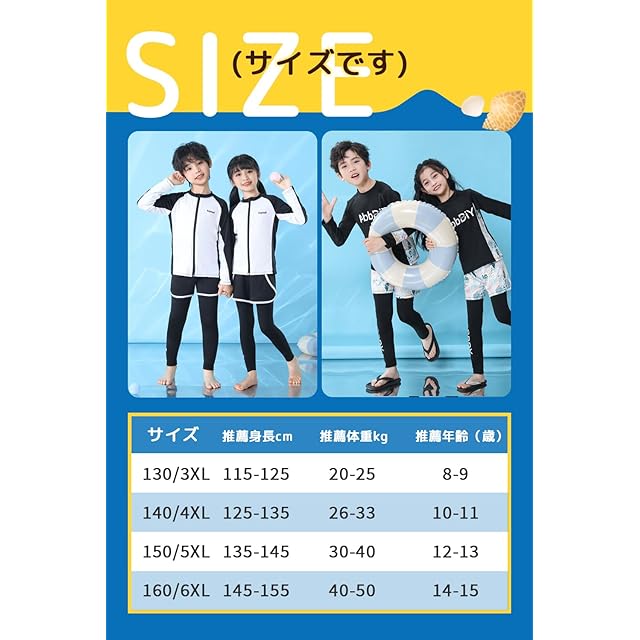 (✪‿✪)【カラバリ豊富 サイズ説明】多色ありますので、お子様自分の好みによって選択できるのはポイントになります。3点セットに使用しても別々に使用してもOK着回し自由自在な子供水着です。お友達や家族とお揃いコーデも楽しいです。サイズ:【130/3XL推薦身長115-125cm、推薦体重20-25kg、推薦年齢8-9歳】;サイズ:【140/4XL推薦身長125-135cm、推薦体重26-33kg、推薦年齢10-11歳】;サイズ:【150/5XL推薦身長135-145cm、推薦体重30-40kg、推薦年齢12-13歳】;サイズ:【160/6XL推薦身長145-155cm、推薦体重40-50kg、推薦年齢14-15歳】。