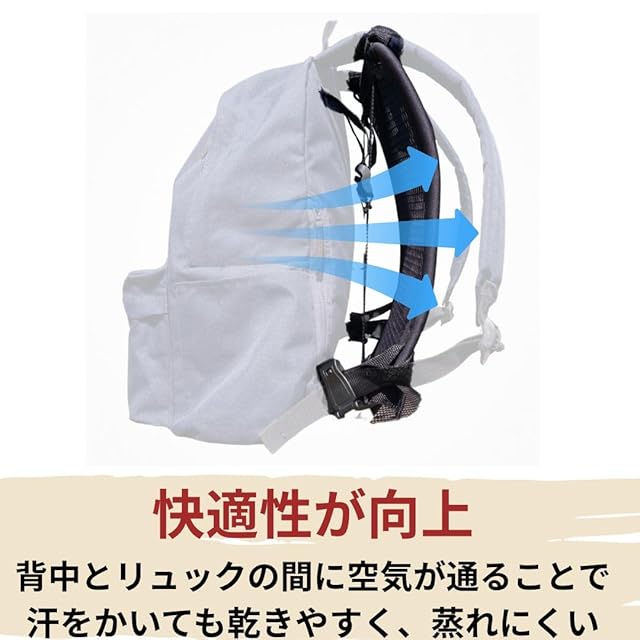 取付簡単: バックパックの背面に固定できる汎用的な設計で、ほとんどのリュックサックに対応