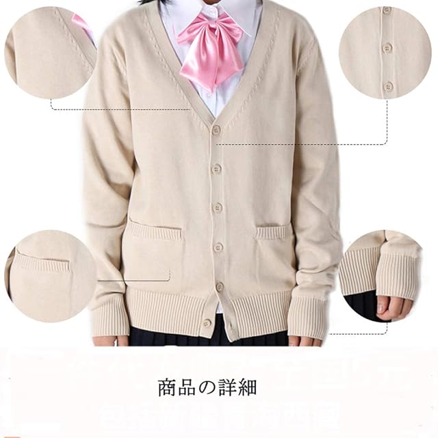 商品名:[Blostirno] スクールカーディガン 女子 制服 カーディガン 学生 厚手 無地 Vネック ゆったり 通学 ベージュ(JP0027BE-L)