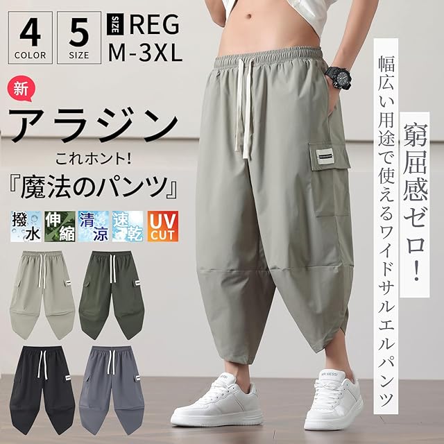商品名:[Fasshonrida] サルエルパンツ メンズ 7分丈 ズボン 夏用 アラジンパンツ 大きいサイズ ゆったり バルーンパンツ 涼しい カーゴ ボトムス 七部丈 ハーフぱんつ ひざ下 カジュアル クロップド 春 夏 sage green XL
