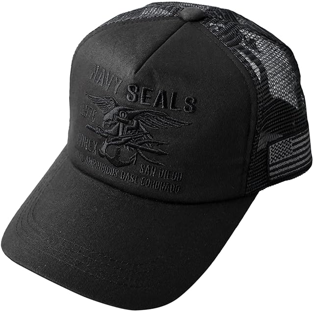 商品名:[アヴィレックス] 2サイズ展開 スタンダード ミリタリー メッシュキャップ XL LL 大きいサイズ 帽子 キャップ メンズ ビッグサイズ 夏 (XL, NAVYSEALSオールブラック(89))