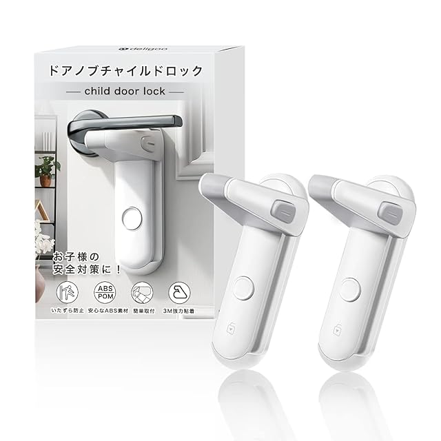 商品名:Deligoo ドアノブ ロック ドアロック 赤ちゃん チャイルドロック 指はさみ防止 後付け ベビーガード ドア開け防止 猫 脱走防止(ホワイト2)