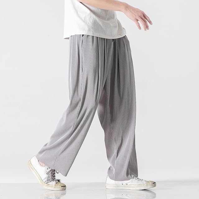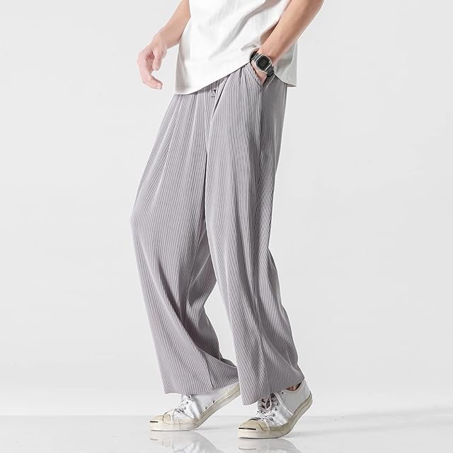 [Fasshonrida] プリーツパンツ メンズ ワイドパンツ 裾カット可能 ズボン 夏用 涼しい ゆったり イージーパンツ 伸びる ストレッチ ボトムス カジュアル ストレートぱんつ ドレープ 長ずぼん 春 夏 gray 3XL