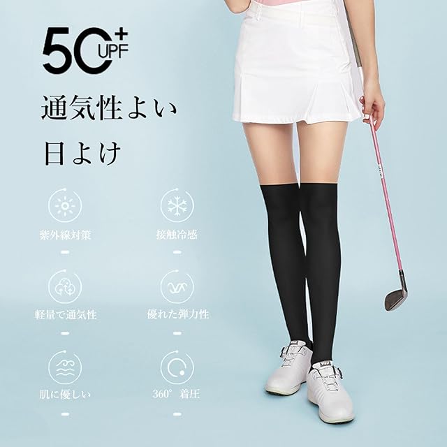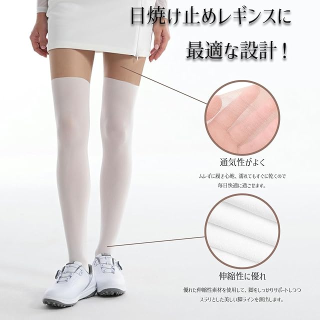 【ソックス風UVストッキング 】ストッキングとニーソックス一体型ゴルフレギンスです。ストッキング部分は透明感、伸縮性、通気性がよく、ムレずに履き心地、濡れてもすぐに乾くので毎日快適に過ごせます。