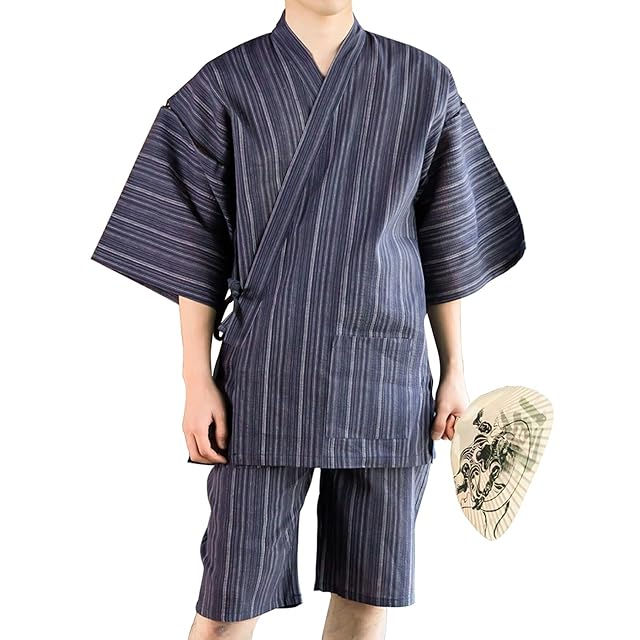 夏の男性用部屋着の定番といえば甚平。<br>日本らしさのあるくつろぎ着で、リラックスできてかつ粋な雰囲気。<br>綿麻素材特有のシャリ感と、見た目にも涼しく透け感があるしじら織りは、暑い夏を涼しく感じさせてくれます。<br>夏のカジュアルな装いとして花火大会や夏祭りに。<br>年齢を問わず着ていただけるシンプルなデザインなので、父の日やお誕生日など、男性へのプレゼントに最適!