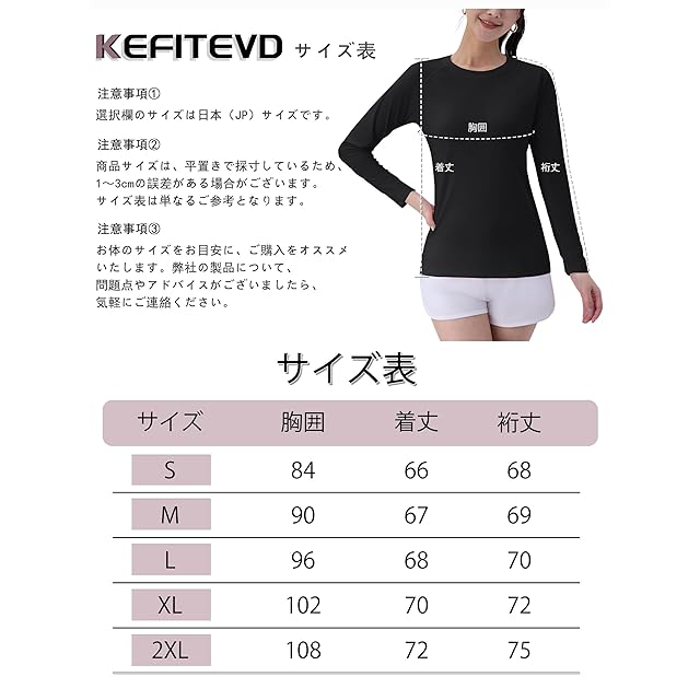 商品名:[KEFITEVD] ロングtシャツ レディース スポーツ 長袖 インナー 速乾 uvカット フィットネス ジムウェア ランニングシャツ 薄手 ストレッチ 仕事用 ブラック 2XL