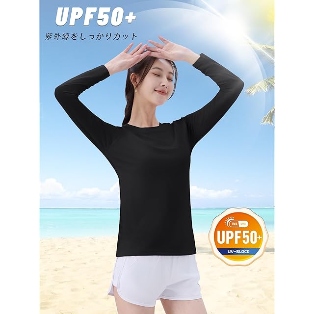 吸汗速乾tシャツ長袖 tシャツ ラッシュガード レディース 黒シャツ レディース 無地 tシャツ 長袖 レディース サイクルシャツ tシャツ レディース 長袖 uvカット レディース 夏用長袖インナー