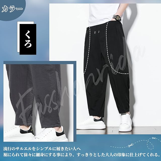 商品名:[Fasshonrida] サルエルパンツ メンズ ズボン 涼しい 夏用 テーパード ワイドパンツ 大きいサイズ アンクルパンツ ゆったり イージーパンツ 9分丈 ボトムス ストレッチ ぱんつ おしゃれ ずぼん 軽快 春 夏 black M