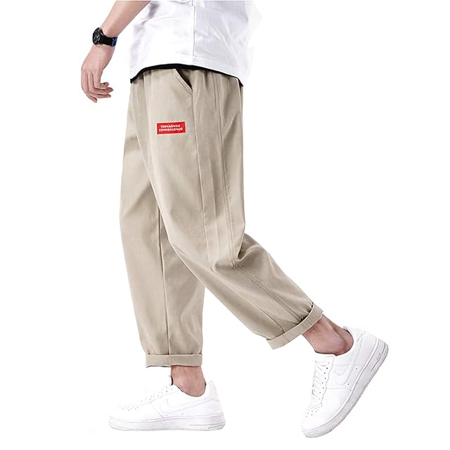 [Poperdision] サルエルパンツ メンズ ズボン ワイドパンツ メンズ 夏服 ズボン 9分丈 無地 調整紐 ゆったり 通気性 大きいサイズ カジュアル 袴 快適 ワイドパンツ オールシーズン対応 Khaki L