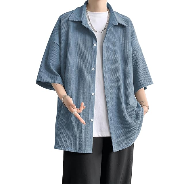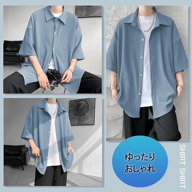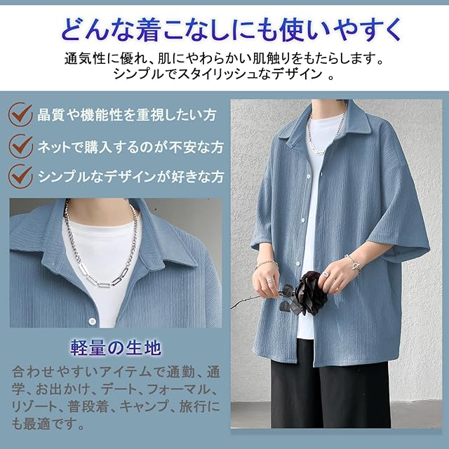<b>【高品質】</b><br/> 高品質素材を使って、さらりとした肌ざわりで通気性がいい、摩擦に耐えてしわに強くて、変形しにくい。パールのような柔らかい光沢感で高級感を醸し出してくれます。<br/><br/> <b>【素材】</b><br/> ポリエステルを使用することで、綿素材では達成できなかった動きやすさを実現し。ハイテク氷状シルク繊維素材を採用し、肌に優しく通気性が良く、冷たくなく常に涼しく快適に保ち、軽量の生地はより快適に感じることができ、重い服のために不快に感じることはありません。<br/><br/> <b>【デザイン】</b><br/> 凸凹とした感じを縦縞で表現した立体感があるのメンズシャツ。さりげないシャレ感が生まれ、上品さのある雰囲気にしてくれますよ!表面に凹凸があるので、汗をかいても肌に密着しないので、さらさらの着心地をキープできます。<br/><br/> <b>【万能型シャツ】</b><br/> 通気性に優れ、肌にやわらかい肌触りをもたらします。シンプルでスタイリッシュなデザイン。 様々な組み合わせに適しており、カジュアルでルーズなフィット感も非常に快適です。合わせやすいアイテムで通勤、通学、お出かけ、デート、フォーマル、リゾート、普段着、キャンプ、旅行にも最適です。 シンプルなデザインでどんな服にも合わせやすく、複数の色を混ぜて合わせることができます。<br/><br/> <b>【涼感】</b><br/> 氷のような生地が肌に直接触れ る 瞬時に涼しく、通気性があり、 汗を発散させます。 肌を蒸れずにドライに保つ 柔らかくて肌に優しく、変形し にくい