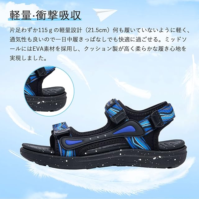 [BTNTN] キッズ サンダル 男の子 キッズサンダル 女の子 スポーツサンダル 人気 子供 子ども ビーチサンダル ジュニア スポーツ アウトドア 水遊び 水陸両用 アウトドア 歩き やすい 履きやすい ブルー 23.5cm