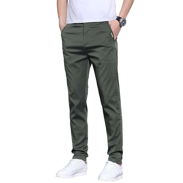 商品名:[Fasshonrida] スラックス メンズ ズボン 細身 スキニーパンツ スリム 脚長 テーパードパンツ 冷感 テンセル 涼しい ストレッチぱんつ 上品 光沢 かっこいい 紳士 ボトムス 裾上げ済み トラウザーズ クールビズ ビジカジ pants for men 春 夏 green 34