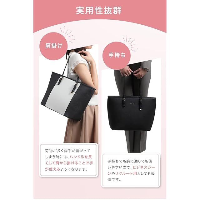 [Miwoluna] ミウォルナ ビジネスバッグ トートバッグ レディース リクルート A4 PUレザー ブラック ロゴ無し