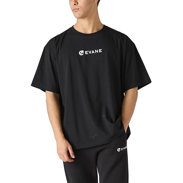 [EVANE] エバン オーバーサイズ コットン ストレッチ Tシャツ (L, ブラック)