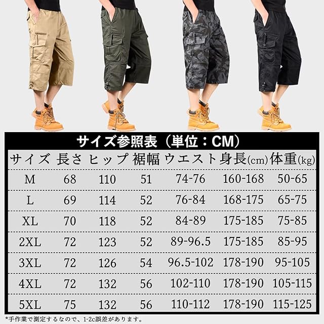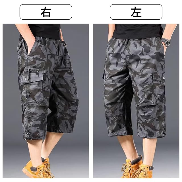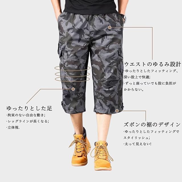 商品名:カーゴパンツ 7分丈 メンズ 大きいサイズ 40-110kg 綿 M-5XL 夏 秋 無地 ショートパンツ(ブラック迷彩 5XL)