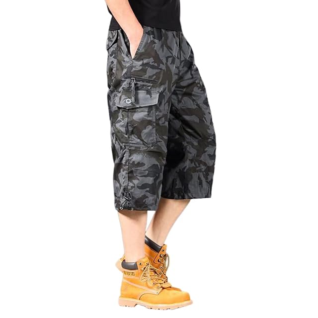カーゴパンツ 7分丈 メンズ 大きいサイズ 40-110kg 綿 M-5XL 夏 秋 無地 ショートパンツ(ブラック迷彩 5XL)