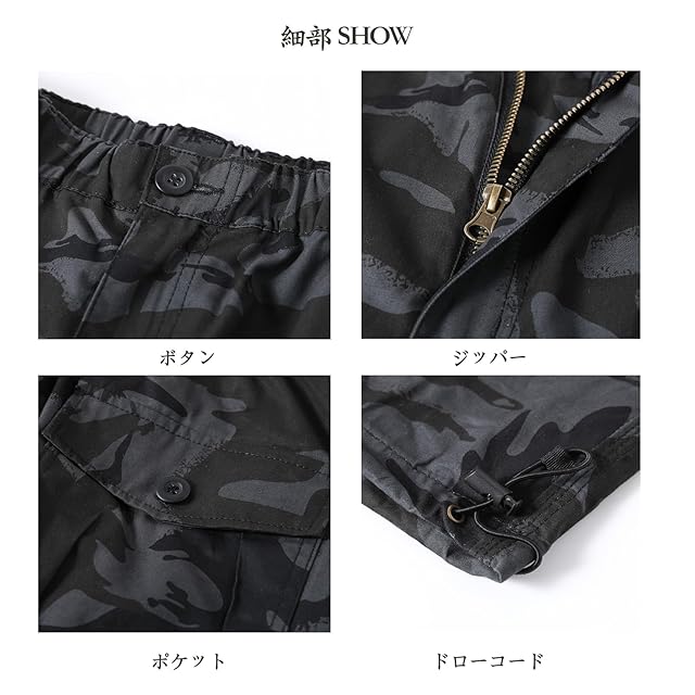 商品名:[MYMRIN]ハーフパンツ メンズ 7分丈 カーゴ 短パン 綿 M-5XL 大きいサイズ半ズボン(黒迷彩,XL)