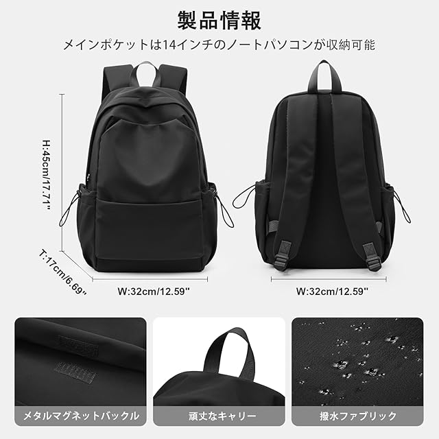 【大容量の収納】リュックサック バックパック 大容量 リュック タウンリュック 衣類、財布、携帯電話、水ボトル、傘、本、鍵等の物をリュックサックで合理的に収納できる。防水 カジュアルリュック キッズバッグ 高校生 リュック 黒 A4ペーパー大きさの文書とタブレットPCも置けます。非常に便利です。