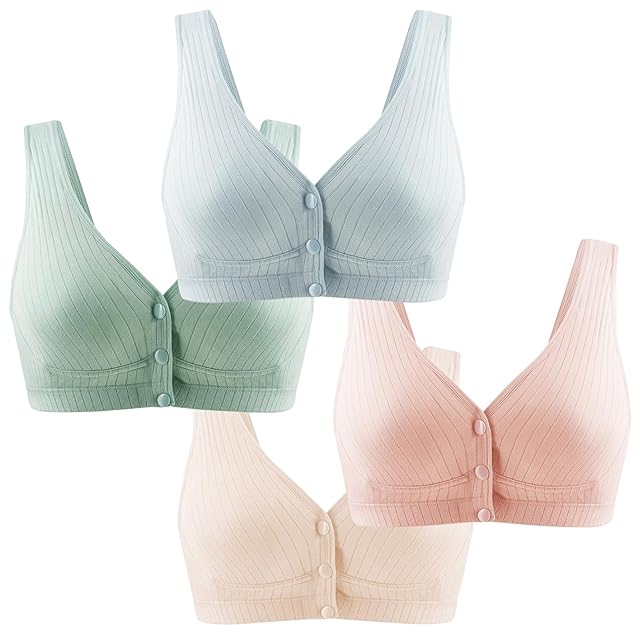 [Joyancejt] マタニティブラ 4枚セット 前開き 綿 授乳ブラ ナイトブラ ノンワイヤー 無地 柔らか 大きいサイズ(グリーン+ライトブルー+ベージュ+薄ピンク, 4L)