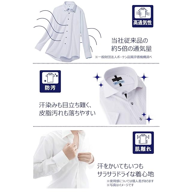 color:ホワイト 新レギュラーフィット 長袖セミワイドカラー 布帛ライク ストライプ M15120005501: