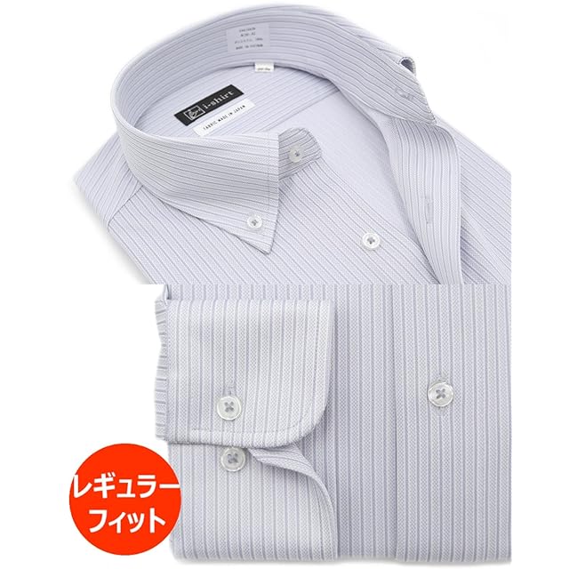 [アイシャツ] i-Shirt 完全ノーアイロン ストレッチ 超速乾 アイシャツ ワイシャツ メンズ グレー ストライプ柄 ボタンダウン レギュラーフィット 長袖 M15125000212 首回り37cm×裄丈80cm
