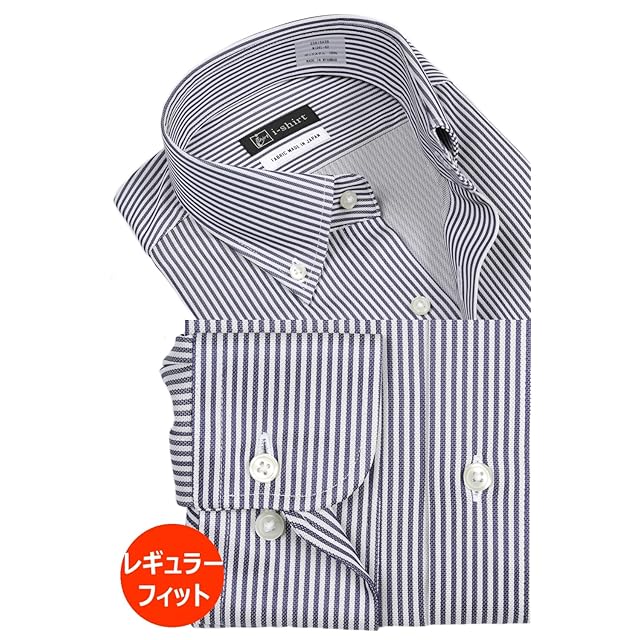 [アイシャツ] i-Shirt 完全ノーアイロン ストレッチ 超速乾 レギュラーフィット 長袖 アイシャツ ワイシャツ メンズ ネイビー 新レギュラーフィット 長袖ボタンダウン ロンドンストライプ M15123001188 首回り39cm×裄丈80cm