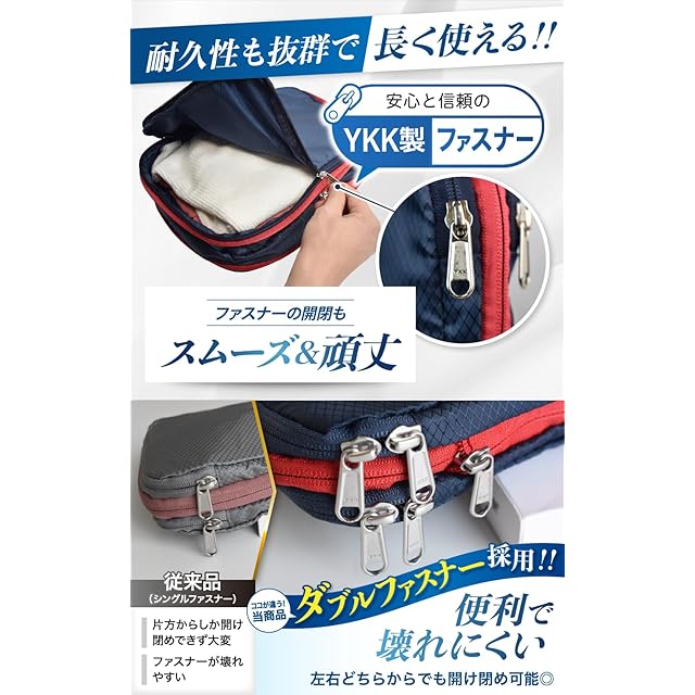 【じゃらん掲載】LIXIA 旅行用圧縮袋 YKK 圧縮袋 旅行 2Way スペース節約 YKKダブルファスナー トラベルポーチ (M, ネイビー)