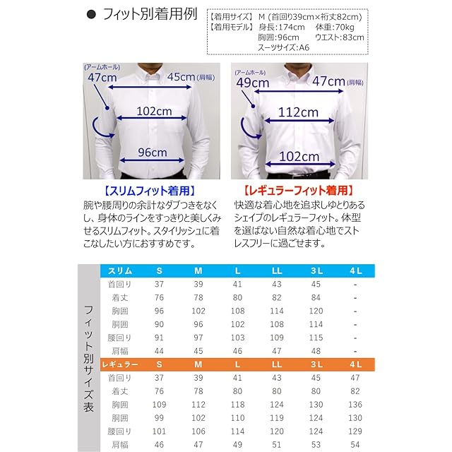 color:ホワイト 新レギュラーフィット 長袖レギュラー 白無地 M15123000501:
