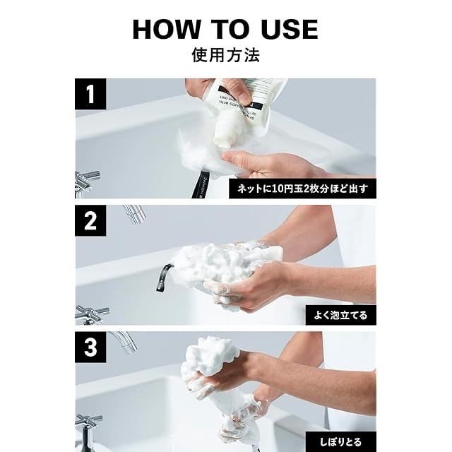 濃厚できめ細かい泡を大量に作るためのオリジナル泡立てネットです。