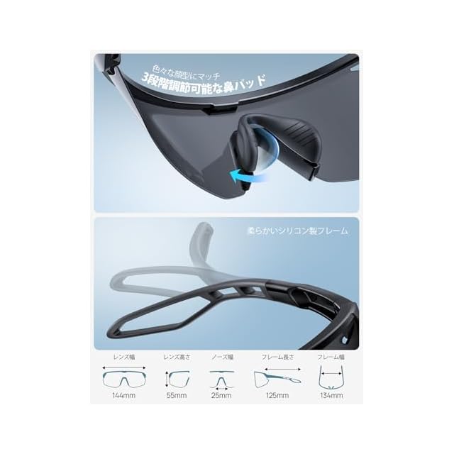 【3段階ノーズパッドで完全フィット】サングラスはアジア人向けに開発した3段階調節可能なノーズパッドを搭載。フィット感良く、鼻の高さが低い方でも、グランフォンド中の激しい動きでずれにくく、子供から大人まで幅広い顔型にマッチ