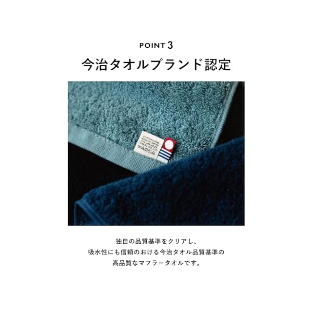 【今治タオルブランド認定】独自の品質基準をクリアし、吸水性にも信頼のおける今治品質基準の高品質なマフラータオルです。