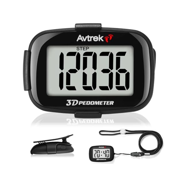 AVTREK 時間表示付きクリップ式歩数計、LEDバックライト、ウォーキングやランニングに最適、大画面、大型デジタルディスプレイ き
