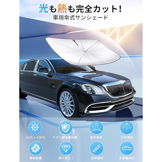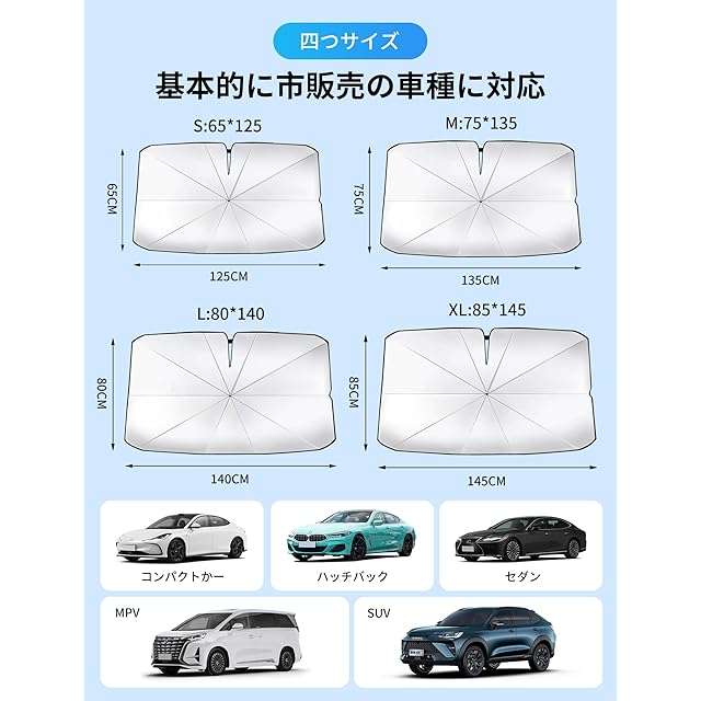【様々な車に対応可能・幅広い用途】Gohill車用サンシェードは4サイズ選択可能で99%の車のフロントガラスに対応できます。普段駐車時の日除け用だけでなく、車中泊や仮眠時にプライバシーの保護に役に立てます。雨の日に傘を忘れた時本製品も仮の傘として使用でき、炎天下でも仮の日傘として使われます。